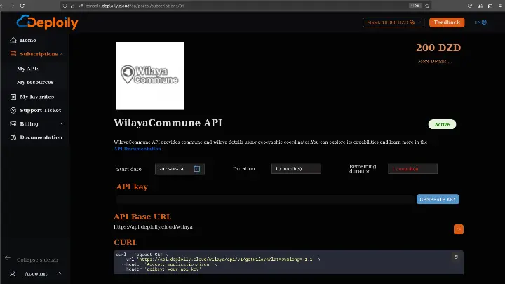 How to Subscribe and Get an API Key for Wilaya/Commune API on Deploily