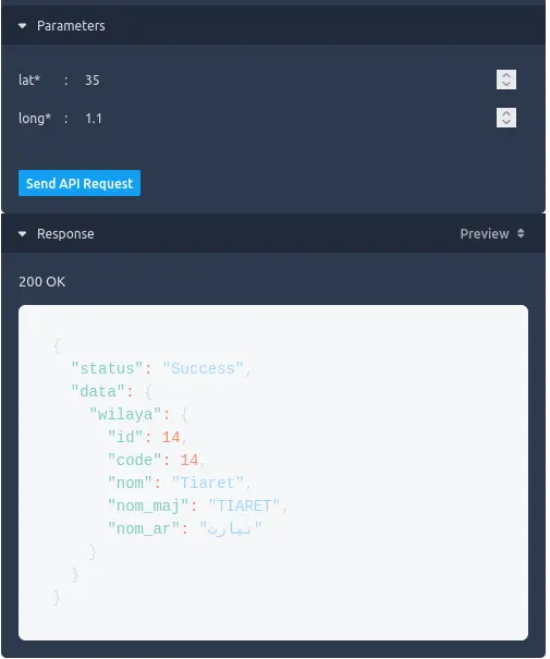 The Wilaya/Commune API helps you find commune and wilaya details using geographic coordinates. Simply provide latitude and longitude to get accurate location data. It’s useful for mapping, address lookup, and location-based services. Secure access is ensured with API keys .